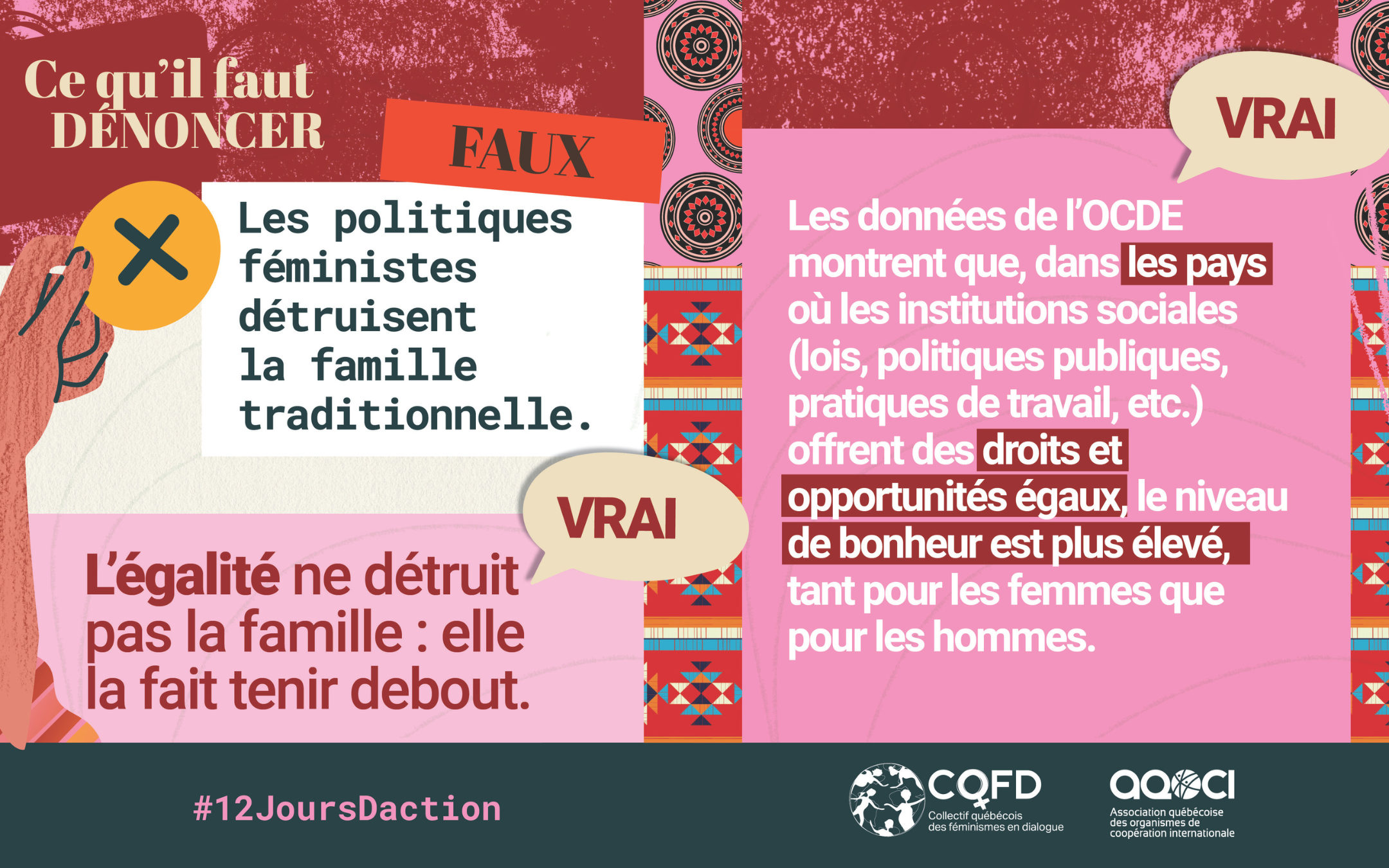 Pour l’édition 2025, notre campagne Ce qu’il faut dénoncer/défendre (CQFD) mise sur un format vrai/faux pour révéler et déconstruire les discours qui oppriment les femmes.